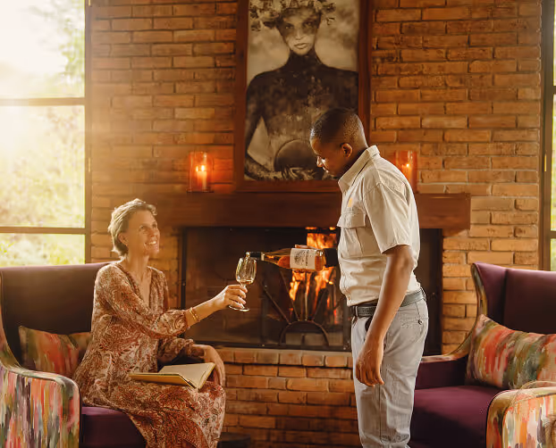 Daytimes can be as relaxed as you wish, either on the private veranda of your room, or sitting in the quiet gardens. In the evenings, we light the camp fire and enjoy aperitifs before serving dinner.